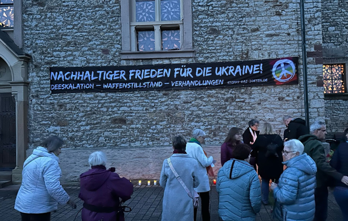 In Aschaffenburg veranstaltete pax christi Würzburg in Aschaffenburg ein Friedensgebet zum 3. Jahrestag des Ukrainekrieges