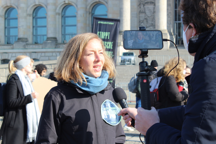 Bei der interaktiven Kunstaktion „Deutschlands größte Waffenkammer“ wurde am 27. Februar 2022 auf einer riesigen Videoleinwand ein „Röntgenbild“ des Reichstagsgebäudes gezeigt. Hinter den Fassaden des Gebäudes wurde dadurch eine Waffenkammer sichtbar, die Deutschlands meist verkaufte Rüstungsgüter enthält: Kriegsschiffe, Panzer, Kampfflugzeuge und Handfeuerwaffen. Mittels Augmented-Reality wurden Aktivist*innen und Passant*innen als Skelette in das „tödliche Geschäft“ integriert.
